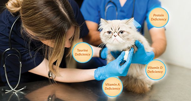 Cats have very specific nutritional needs, and deficiencies in taurine, vitamins A and D, protein, essential fatty acids, calcium, phosphorus, and B vitamins can lead to severe health complications. Feeding a balanced, high-quality commercial diet or carefully formulated homemade diet is essential to prevent these deficiencies. Regular veterinary check-ups and monitoring your cat’s health and dietary intake can help ensure a long, healthy, and active life for your feline companion.