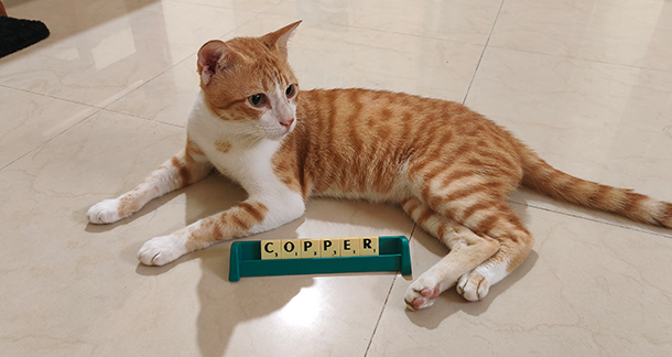 From the second he stepped into their home, it was clear who was in charge (hint: not the humans). Copper is an absolute master of manipulation, and his primary weapon is his set of giant, Garfield-kind-of melting eyes. He knows exactly how to use them. One soft, slow-blinking look from across the room, and we are putty in his paws. Want an extra treat? Melting eyes. Want to play fetch at 3 AM? Melting eyes. He has us wrapped completely around his little toe beans, and we wouldn’t have it any other way.