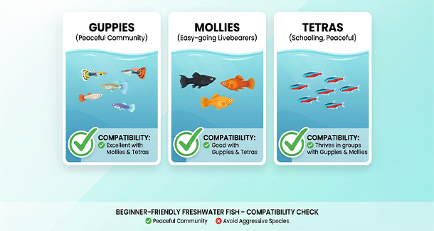 - Start with hardy, beginner-friendly fish that are little forgiving when it comes to the learning curve