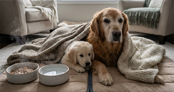 • The ones requiring maximum attention are aged pets and very young ones – whose thermoregulatory systems are not yet During this time, they can be provided with warm water and warm food, along with which – meal frequency can be increased within limits. During this time, their calorie intake should be modified based on the recommendations provided by your veterinarian. Stock up on supplies such as food, water, and pet meds in case of emergencies.