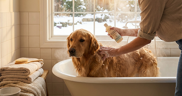 • Frequency of bathing should be reduced and limited to once in two weeks, unless the pet has underlying skin issues needing frequent baths. Bathing should be done during the warmer periods and animals can be washed with a moisturizing shampoo. While some amount of shedding is expected throughout the year, look for signs of dry skin flakes which could indicate the initial signs of dandruff.