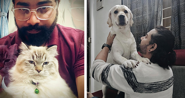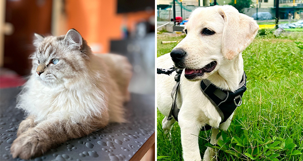 People ask me if it’s hard to take care of a high-energy Lab and a long-haired Persian. I tell them that the vacuuming and the long walks are a small price to pay for the joy they bring.